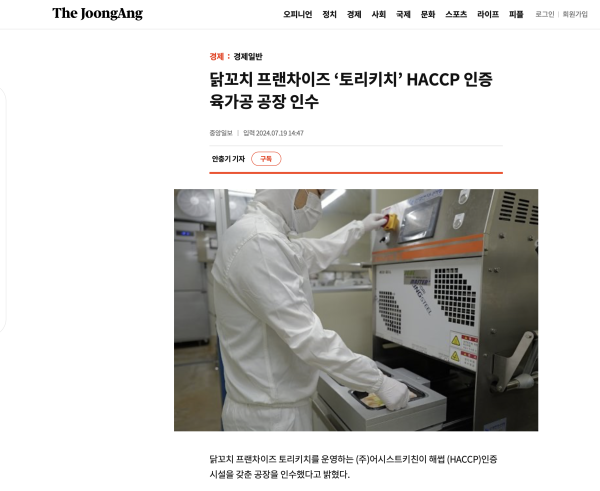 토리키치 성수 제2공장 인수 관련 기사가 중앙일보에 보도되었습니다.